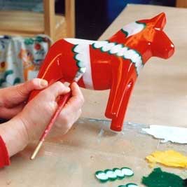 Das ist das ganz klassische DALA-Pferd aus der Region Dalarna in Mittelschweden. Bei GRANNAS einem der wenigen Originalhersteller werden die kultigen Holzpferdchen bis heute von Hand hergestellt. Der Mythos der Bedeutung des Pferdes geht bis in die Wikingerzeit zurück und bereits Anfang des 17. Jahrhunderts gibt es schriftliche Aufzeichnungen über den Verkauf geschnitzter Holzpferde, die ähnlich dem noch heute produzierten Pferd waren.