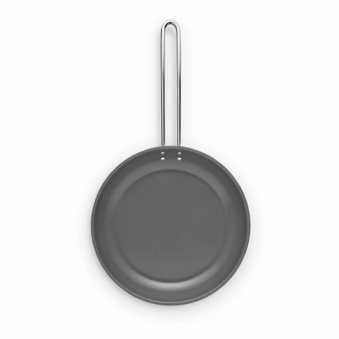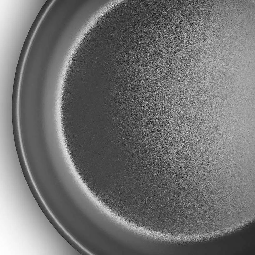 Der Korpus der Pfanne besteht aus 90 % Recycling-Edelstahl und verfügt über einen Sandwichboden, bei dem die Wärme gleichmäßig über die gesamte Bratfläche verteilt wird. Die Kombination aus Edelstahl und Titanoberfläche bildet die Grundlage für eine Pfanne mit beeindruckend langer Lebensdauer. Selbst nach vielen Jahren des Kochens und der Reinigung bewahrt sie ihr hübsches Aussehen und ihre herausragenden Eigenschaften.