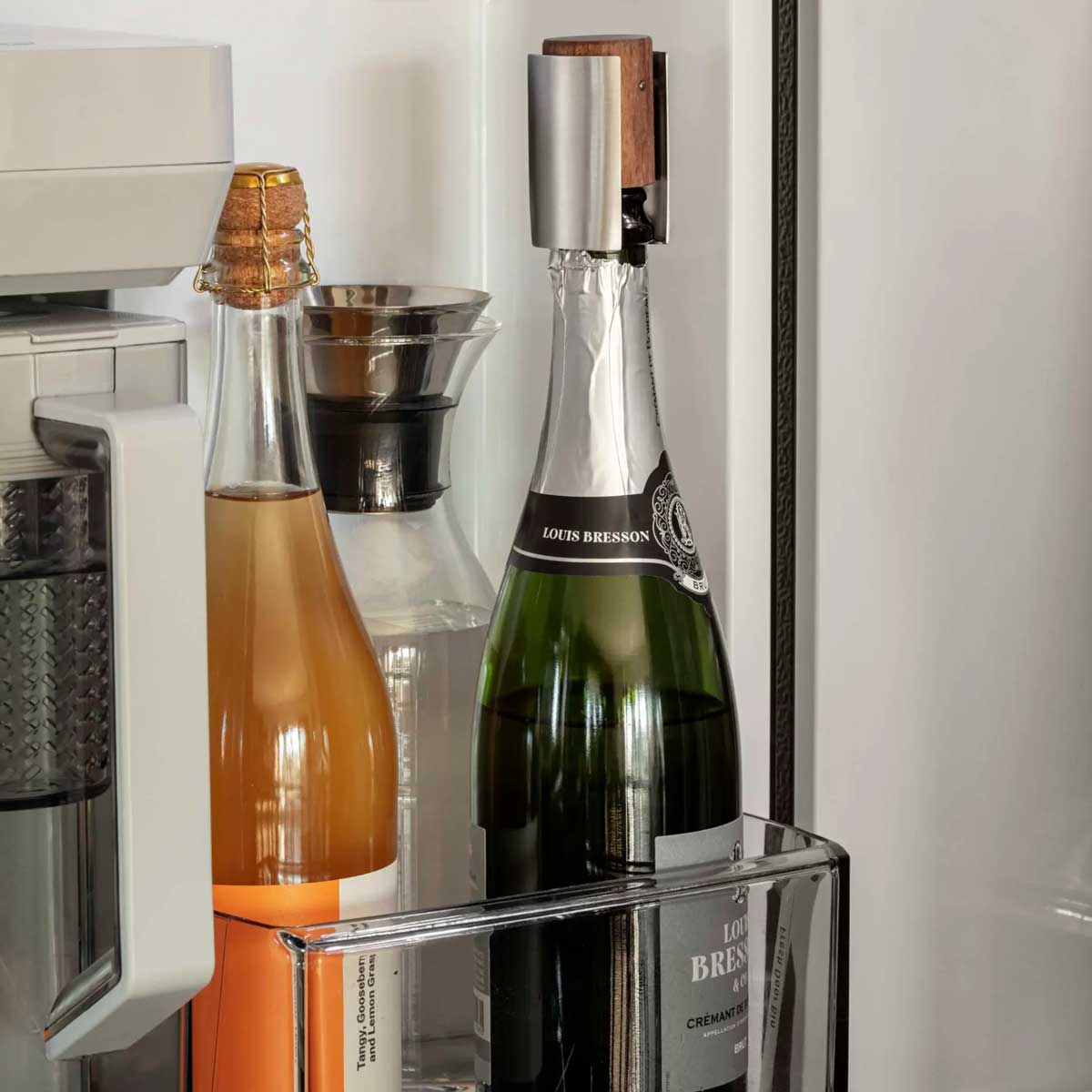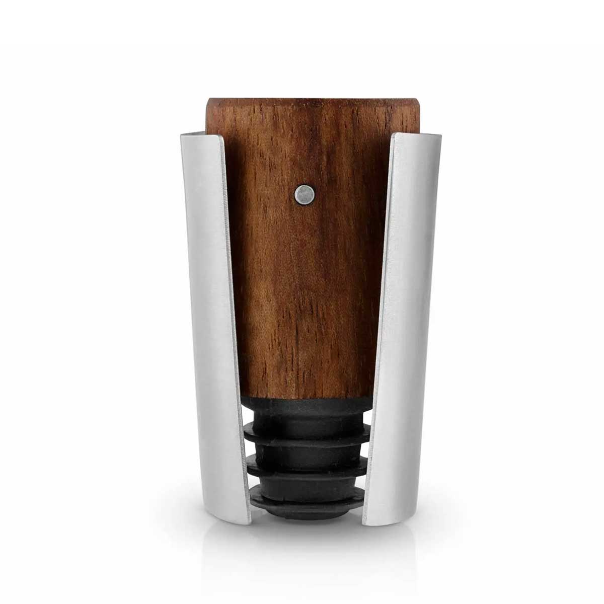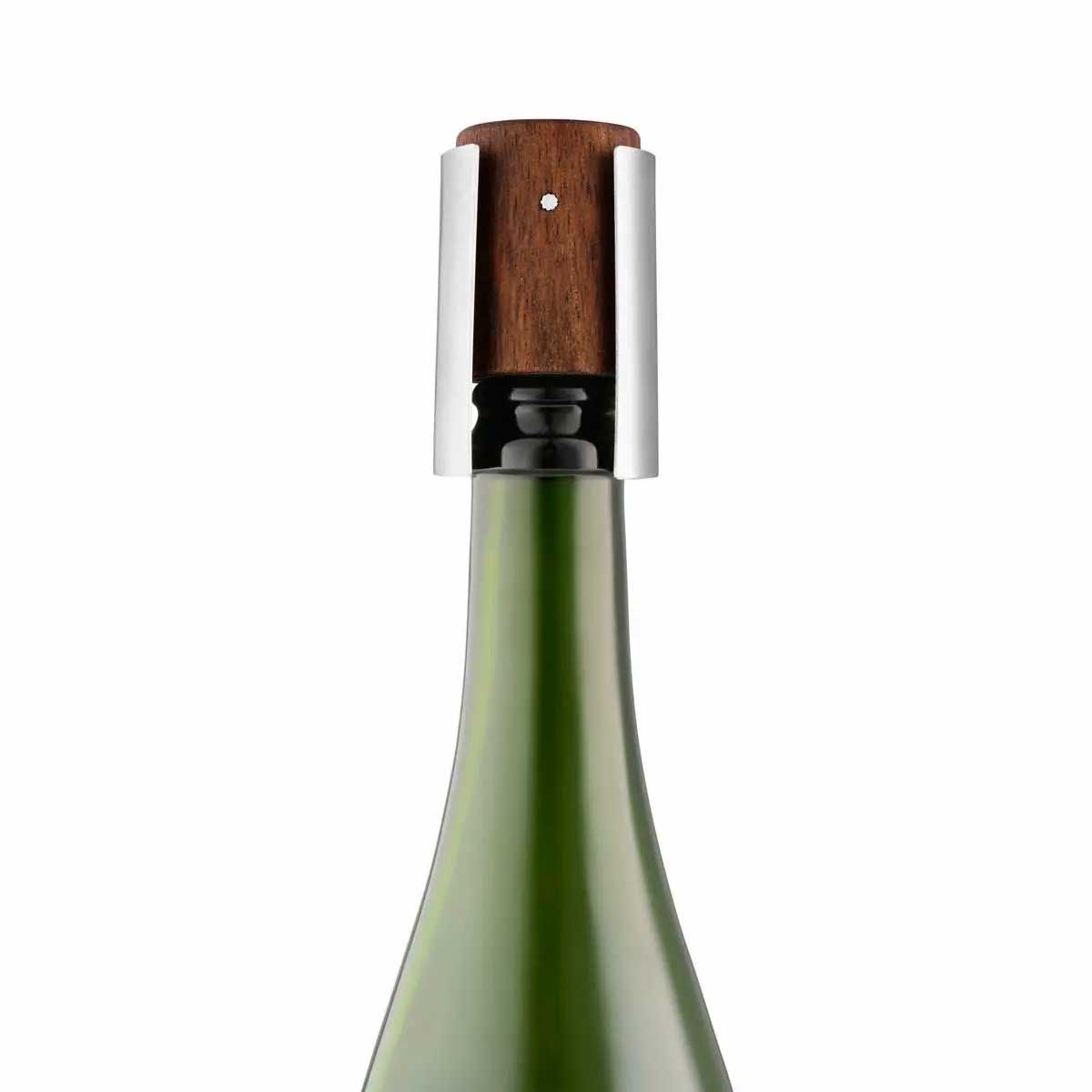 Lassen Sie die Sektkorken knallen! Der Liquid Lounge Sektverschluss verlängert den Genuss Ihrer Champagner- und Sektflaschen, indem er Geschmack, Frische und Perlage noch lange nach dem Öffnen bewahrt. Der Verschluss verschließt die Flaschenöffnung und verhindert das Eindringen von Luft, sodass der Inhalt frisch bleibt. Drücken Sie den Verschluss nach unten um den Flaschenhals herum, und drücken Sie dann die Seiten zusammen, damit er sicher und dicht sitzt. Zum Sichern des Verschlusses wird nur leichter Druck benötigt. Hergestellt aus Nussbaumholz und Edelstahl. Eine praktische und elegante Lösung, die die Party um ein paar Tage verlängert. Auch für Weinflaschen geeignet.