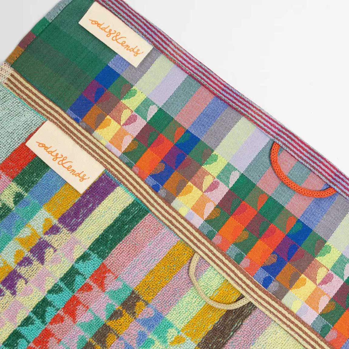 Fröhliche Heimtextilien aus Industrieresten! Wenn Fabriken Garne färben um daraus später Textilien zu weben, stellen sie für alle Fälle immer etwas mehr davon her, vieles davon bleibt aber ungenutzt. Die Odds & Ends-Kollektion der holländischen Designerin Foekje Fleur nimmt sich gerade dieser vergessenen Garne an und schafft aus den Resten praktische Küchenhelfer in unerwarteten Farbkombinationen. Die Verwendung von Restgarnen bedeutet natürlich, das die Farben und Muster immer wieder neu entstehen und wir praktisch jeden Monat eine neue Kollektion aus Holland bekommen.