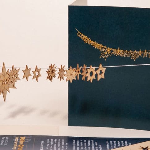 Die kleinsten Teile sind alle mit dem Laser ausgeschnitten und werden nur von dünnen Stegen in der Karte gehalten. Diese können leicht durchbrochen oder, wie wir empfehlen, mit dem Cuttermesser durchtrennt werden.