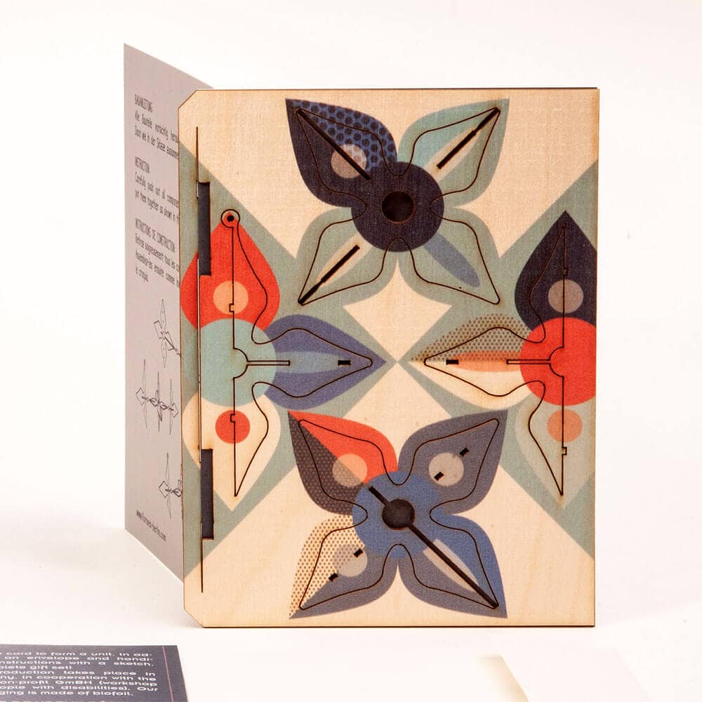 Die A6 Bausatz-Karte aus 1mm dickem Birkensperrholz kommt mit einer Doppelkarte aus Papier, die mit der Holzkarte verbunden werden kann. Außerdem mit Umschlag und einer Kundeninfo und Bauanleitung auf deutsch, englisch und französisch. Wenn Sie eine kurze Botschaft, direkt auf die Teile des Objekts schreiben, bleibt diese mit dem Objekt verbunden und kann so an eine gemeinsame Zeit oder ein schönes Ereignis erinnern.