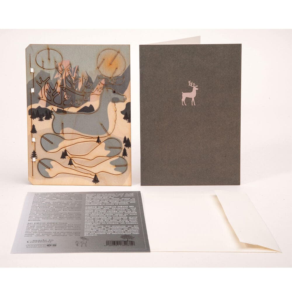 Die A6 Bausatz-Karte aus 1mm dickem Birkensperrholz kommt mit einer Doppelkarte aus Papier, die mit der Holzkarte verbunden werden kann. Außerdem mit Umschlag und einer Kundeninfo und Bauanleitung auf deutsch, englisch und französisch. Wenn Sie eine kurze Botschaft, direkt auf die Teile des Objekts schreiben, bleibt diese mit dem Objekt verbunden und kann so an eine gemeinsame Zeit oder ein schönes Ereignis erinnern.