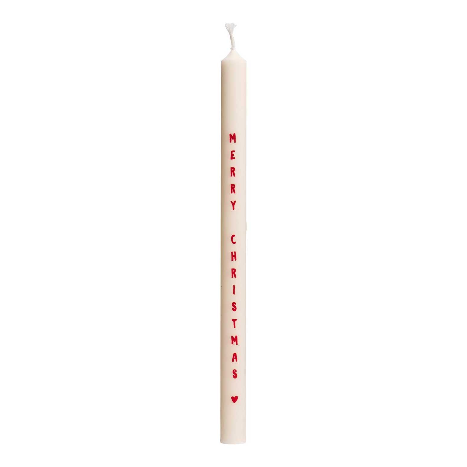 Dünne Kerze Merry Christmas Schriftzug Höhe ca. 20,0cm Durchmesser ca. 13,0mm