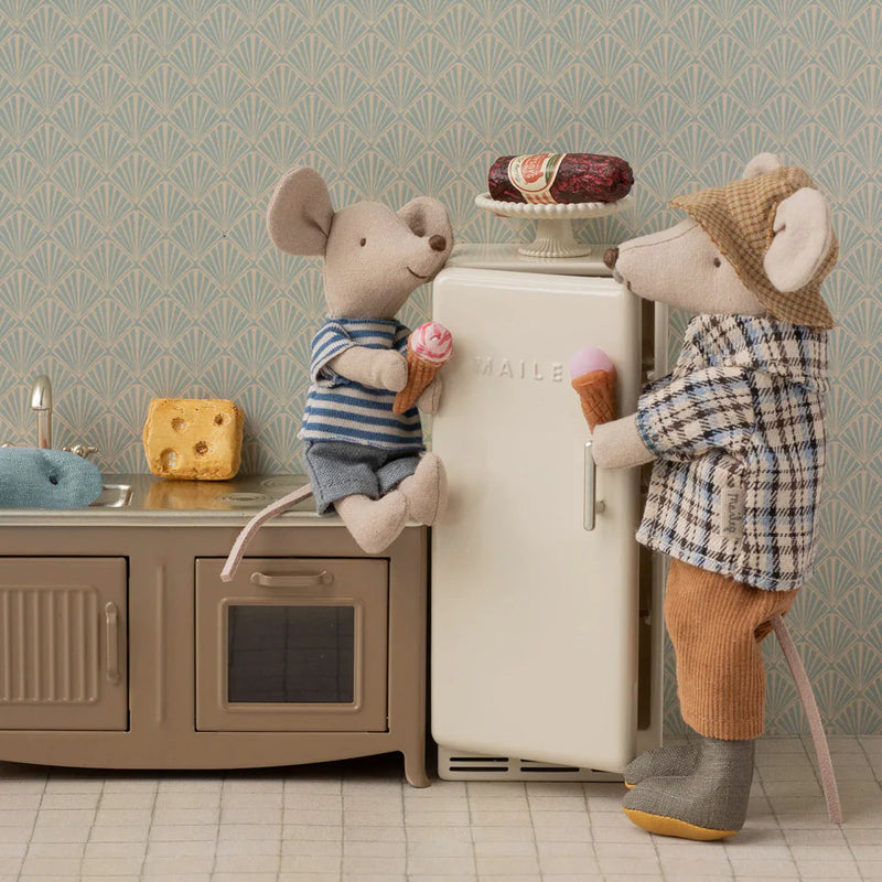 Der schaut aber unternehmungslustig aus. Ein richtig rüstiger Rentner diese Großvater Maus von Maileg. Mit den Gummistiefeln, dem Hut in Kombination mit der Fliege macht der "Opa" gleichzeitig einen sehr adretten aber auch sportlich, zupackenden Eindruck. Also ein Großvater mit dem man noch so richtig viel unternehmen und erleben kann.