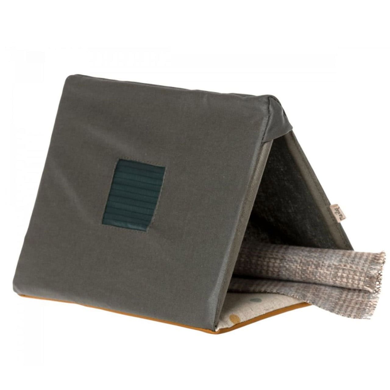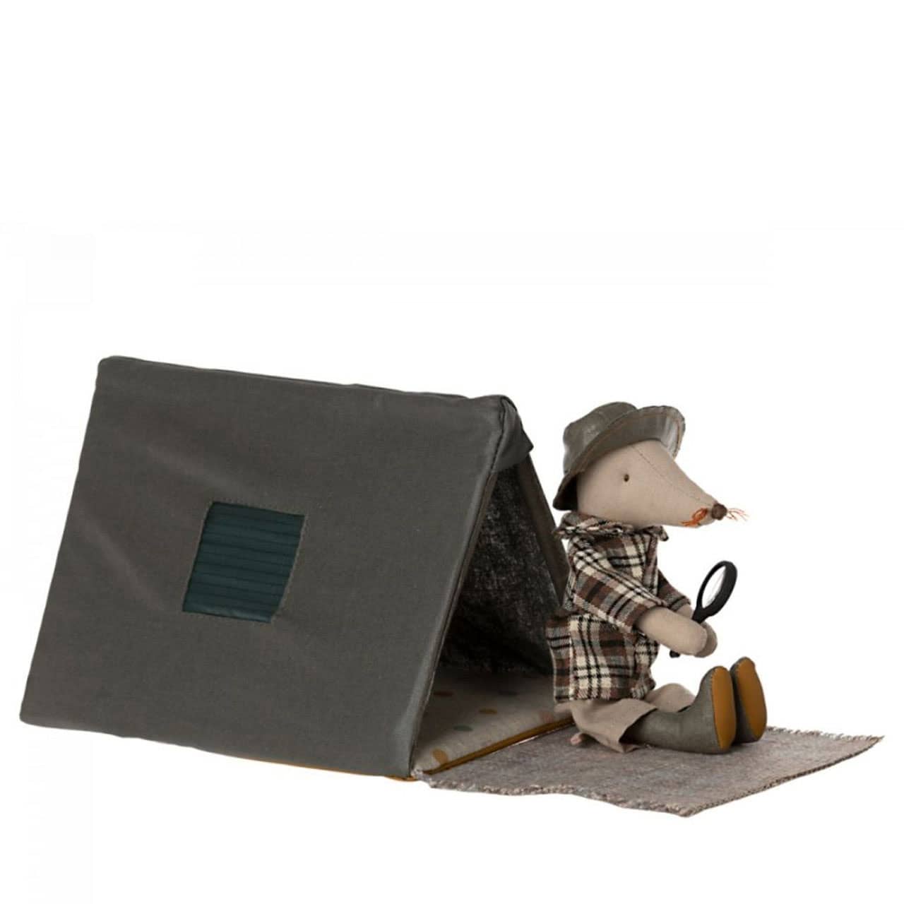 Die kleine Maus übernachtet so gerne in ihrem eigenen kleinen Faltzelt unter der kuscheligen Decke.
