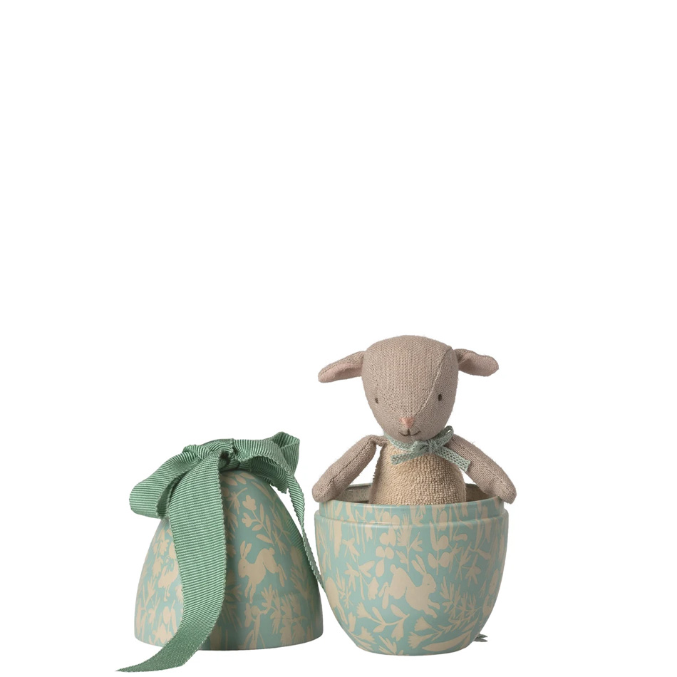 Was für ein süßes Ostergeschenk. Ein Metall-Osterei mit dekorativem Print und gefüllt mit einem süßen kleinen Lamm. Das ist doch auf jedem Osterfest das Highlight.