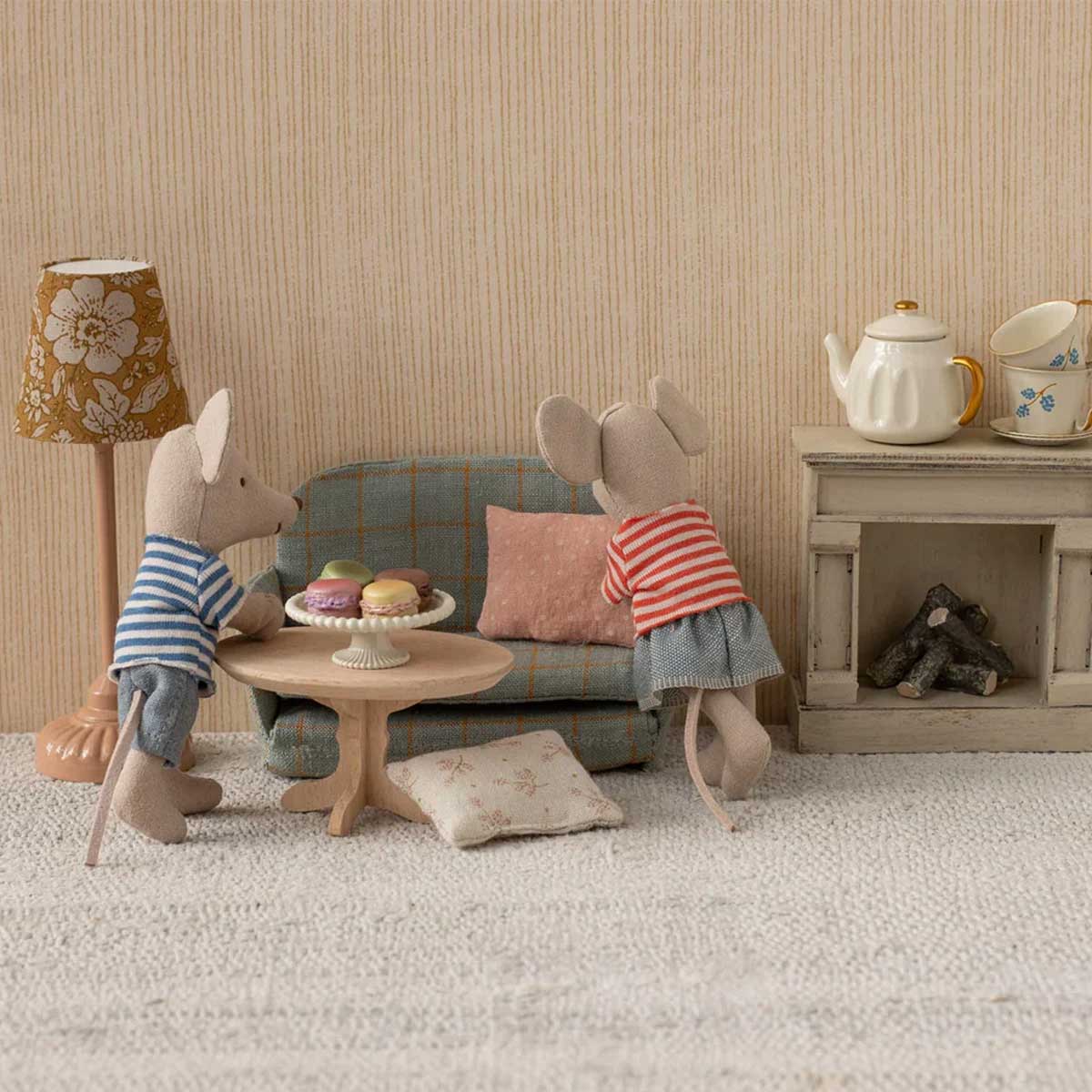 Und wenn es dann gemütlich wird, dann darf dieser kleine Couchtisch als Ablagemöglichkeit natürlich nicht fehlen. Dieser kleine ovale Couchtisch von Maileg passt perfekt zu den Maileg Mäusen und deren Möbel.