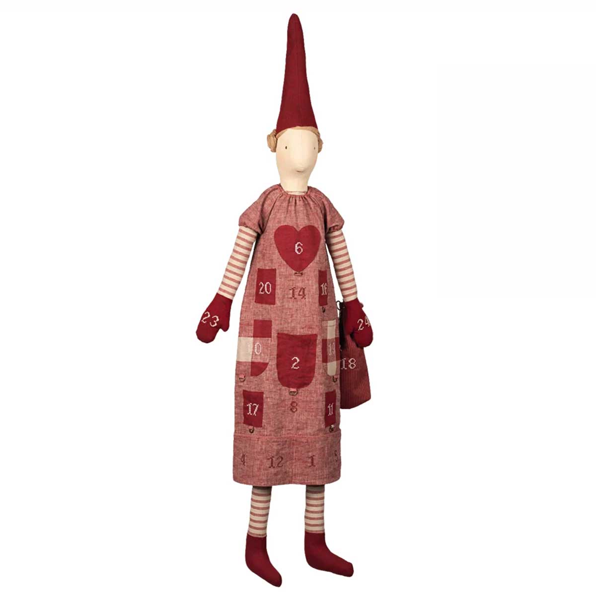 Dieses süße Pixy-Kalendermädchen von Maileg hat 24 Ringe und Taschen, in denen kleine Geschenke und Süßigkeiten befestigt werden können - eine für jeden Tag bis Weihnachten. Dieses süße Kalendermädchen hat im Nacken eine feste Schlaufe zum Aufhängen.
