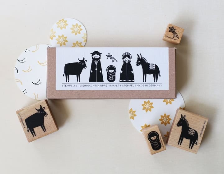 Dieses weihnachtliche Set besteht aus 6 Stempeln. Verpackt in einer praktischen Stülpschachtel aus Pappe.