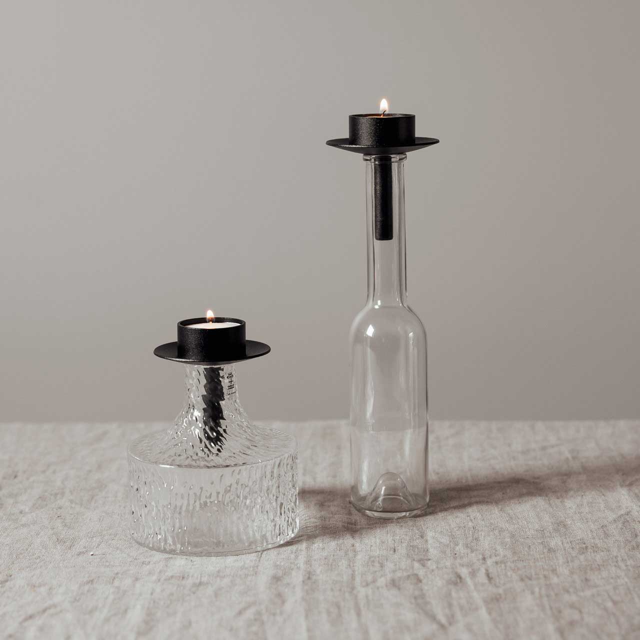 Der Flaska Kerzenhalter für ein Teelicht von der schwedischen Schmiede Våges ist ein Kerzenhalter für handelsübliche Teelichter. Sie können den Kerzenhalter einfach auf Wein oder Spirituosenflaschen stecken und haben so einen Kerzenhalter der toll aussieht.