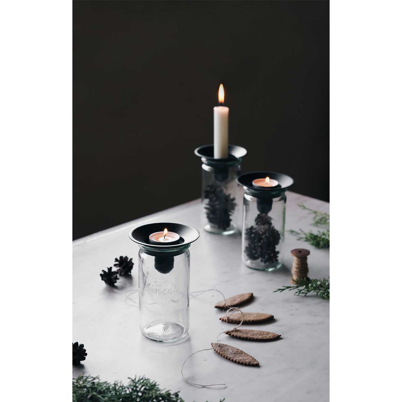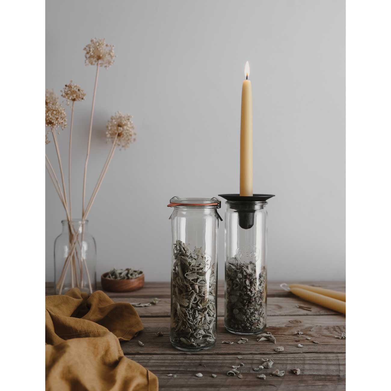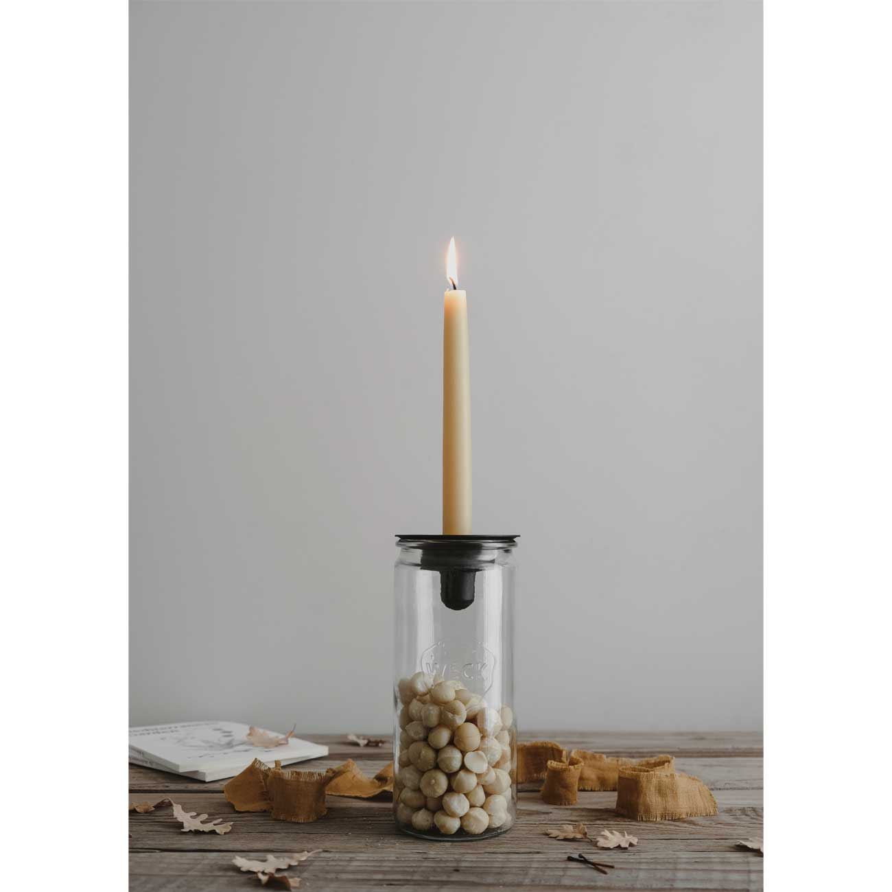 Der Våges Kerzenhalteraufsatz Burk für Gläser ist ein sehr vielseitiges Produkt. Einsetzbar auf Gläsern, Vasen oder etwas größeren Flaschen. In die verschiedenen Abstufungen des Kerzenhalters passen wahlweise handelsübliche Stabkerzen, die zweite Ebene ist für Teelichter geeignet und ganz oben können Kugelkerzen oder Altarkerzen eingestellt werden. Sie haben die Qual der Wahl und können das darunter liegende Glas ganz nach Ihrem Geschmack dekorieren.